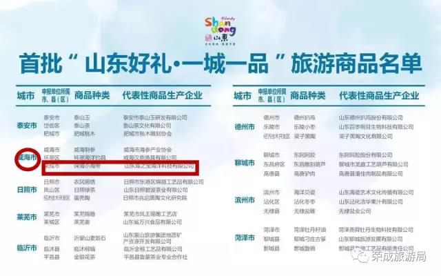 近日,首屆“山東好禮·一城一品”旅游商品名單公布,威海市共有三項商品入選,其中就有我市海芝寶的深海小海帶。守屆“山東好禮·一城一品”旅游商品評選活動是山東省旅游發(fā)展委員會今年3月啟動的,主要是在山東省各市、縣(區(qū))區(qū)域范圍內推選出能夠代表本地文化、地域特色的標志性品牌旅游商品,推進旅游購物供給側改革,完善旅游商品品牌建設。經(jīng)過各市初選、大眾評選、專家終評3個階段,最終形成了涵蓋全省17城市、部分縣(市、區(qū))共50種(類)特色旅游商品推薦名單,囊括了全省知名品牌產(chǎn)品、地方特色文化工藝品、知名土特產(chǎn)品、知名小吃等多個種類。
